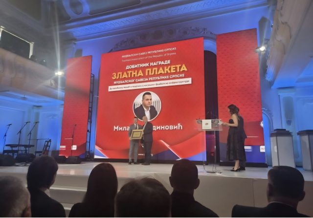 Вукадиновићу је Златна плакета додијељена за несебичну помоћ и подршку у изградњи фудбалске инфраструктуре.